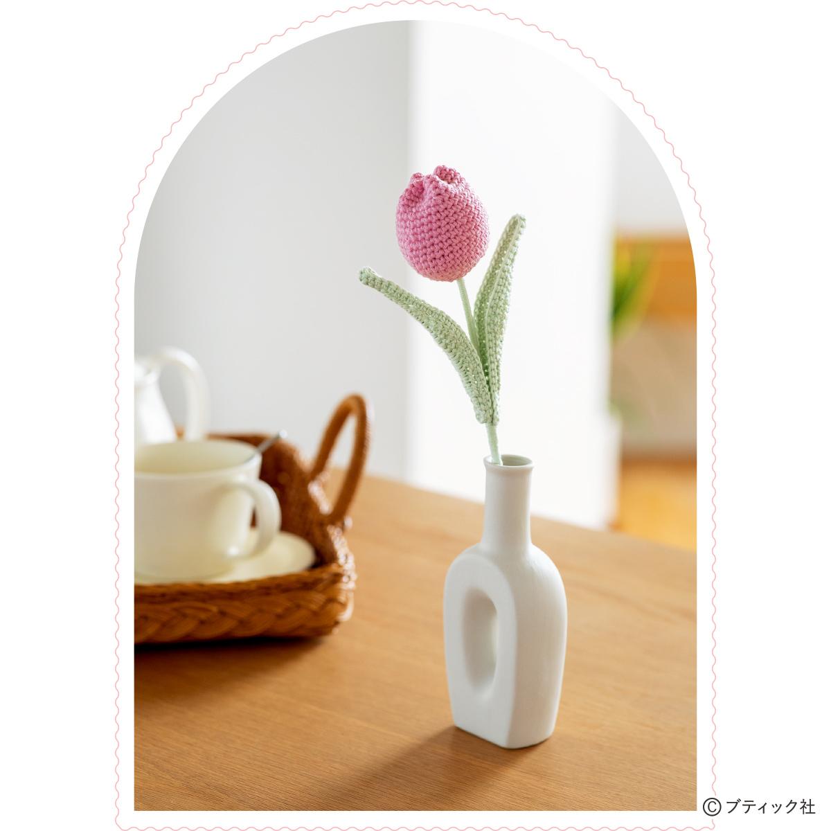 編み始めの糸は残しておき、編み終わりの糸は約30cm(チューリップの口を閉じる分)残して切る。