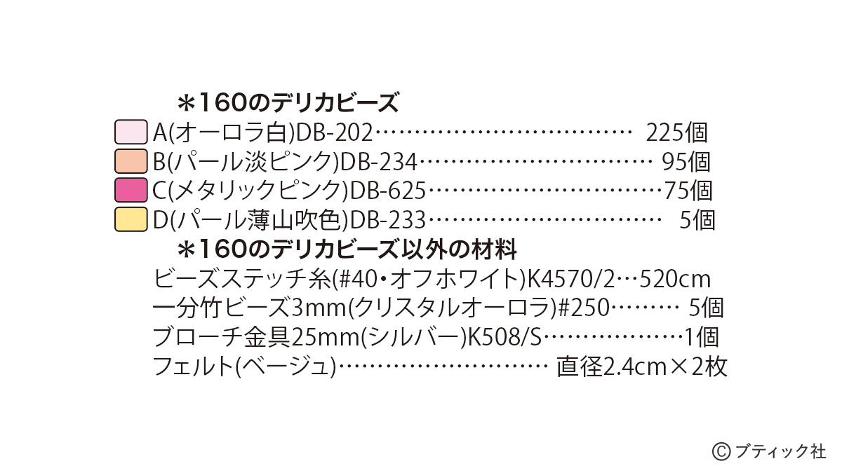 作り終わりの糸を外側のビーズに通して引っぱり、花びらに丸みをつけます。作り終わりの糸の始末をします。