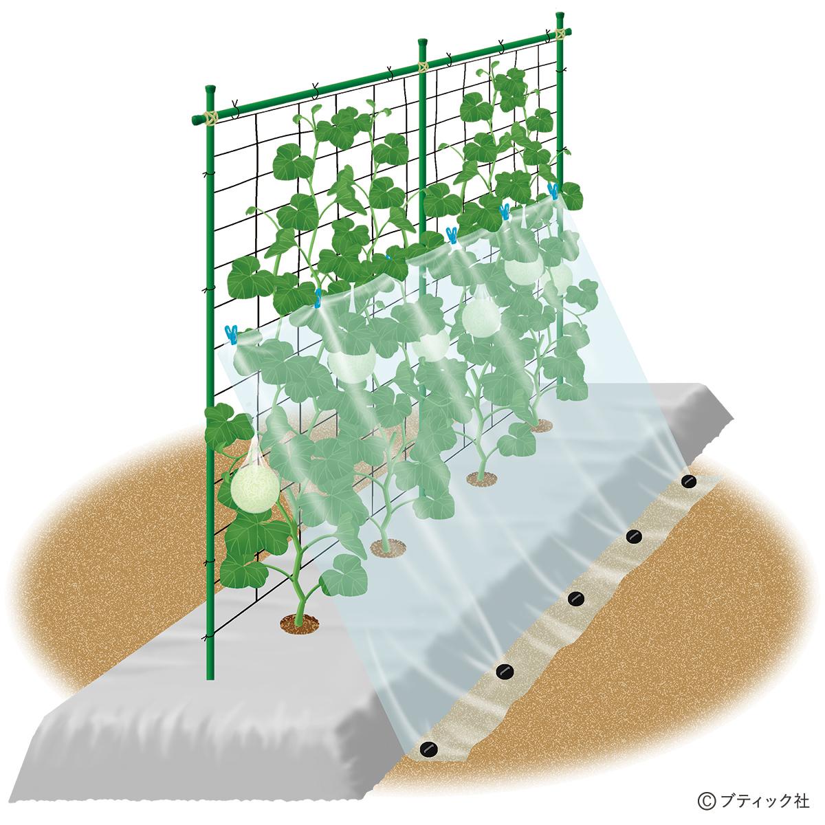 perm_media 《画像ギャラリー》夏野菜のアイデア栽培「メロンの立体栽培に雨よけをプラス」の画像をチェック! navigate_next