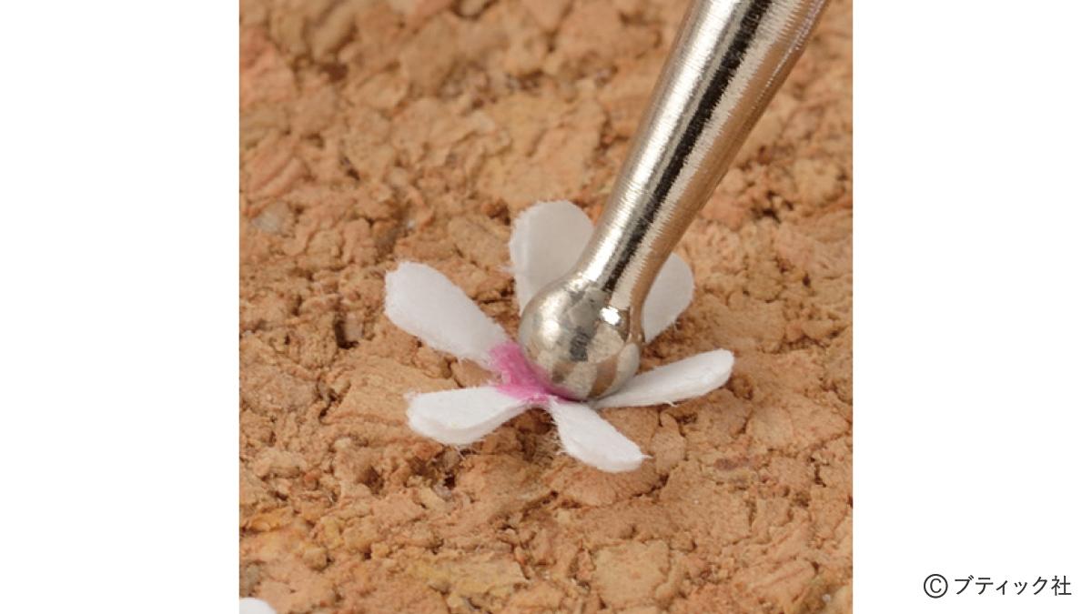 06 花芯の中心をエンボスペンで押してくぼませます。