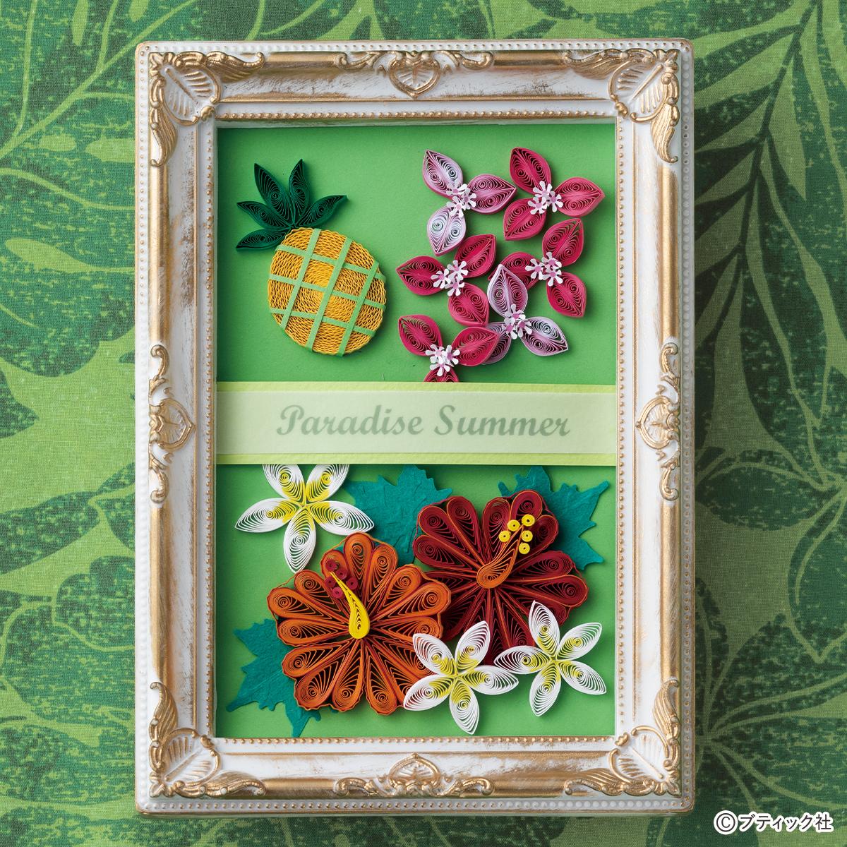 ペーパークイリングで作る、夏のフラワーフレーム!パイナップル、ブーゲンビリア、プルメリア、ハイビスカス、元気な色合いの夏の花々。ビタミンカラーでトロピカルな夏柄を楽しみましょう。ここでは「ブーゲンビリア」をピックアップして紹介します!