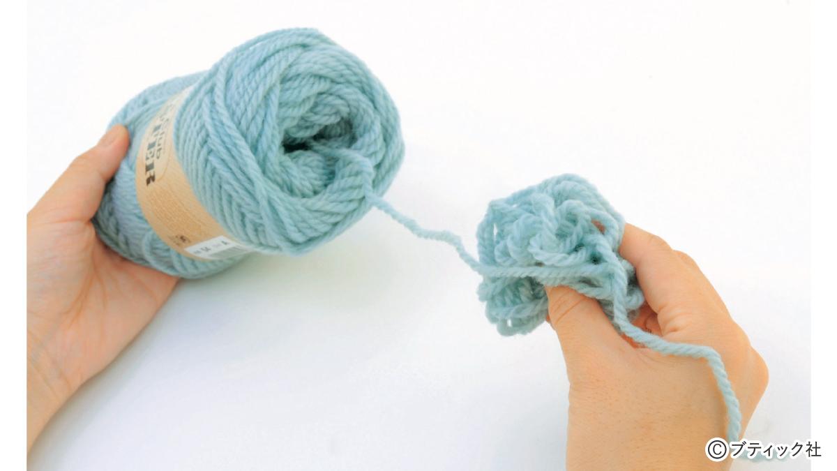 棒針で気軽に楽しめる編み込み模様のレシピ。紹介するポップコーンの模様は、ふわふわした質感と今にも飛び出てきそうなリアル感が魅力!濃い水色、赤、白、の対比も、とてもキュートです!