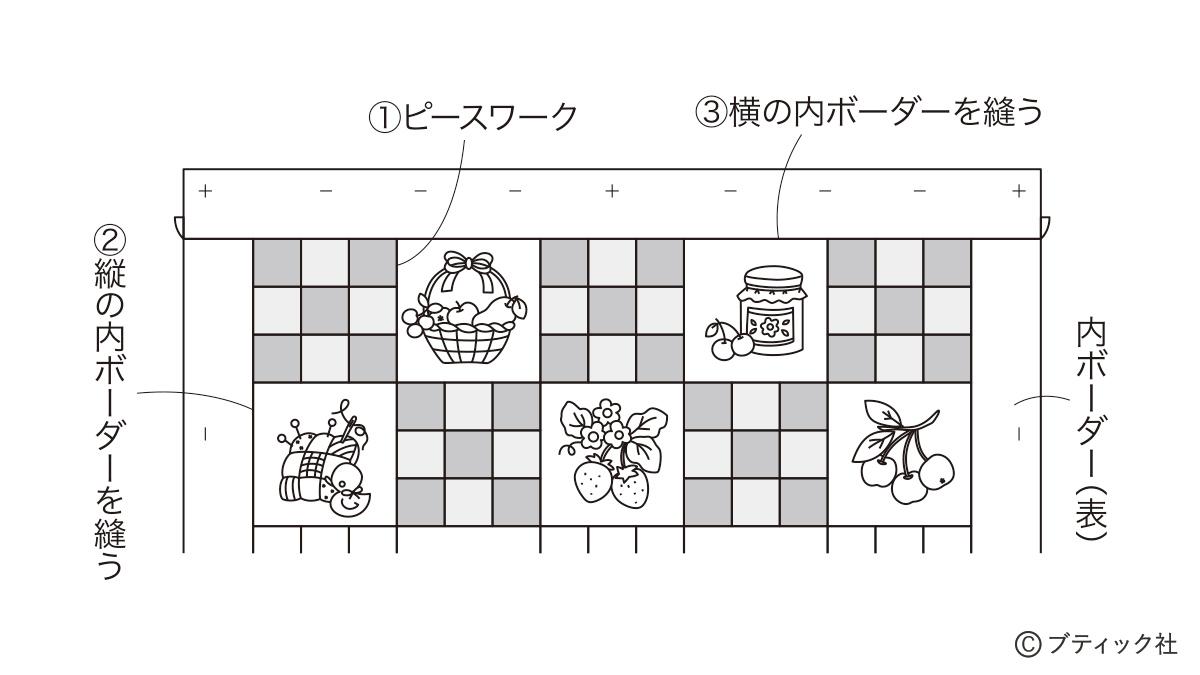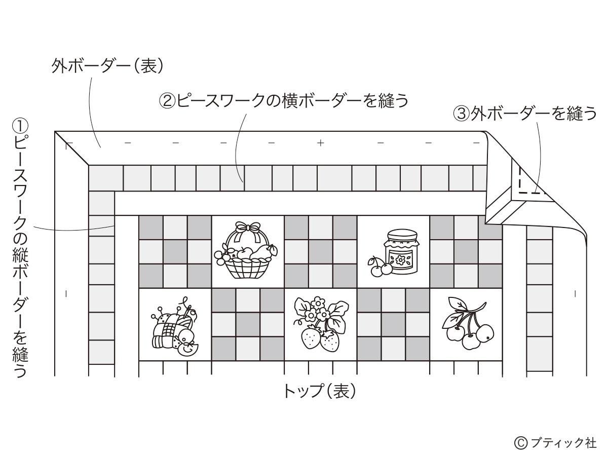 「四角つなぎとブルーワークのタペストリー」の作り方