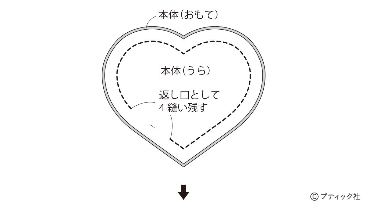 「デニムのふっくらハートのチャーム」の作り方