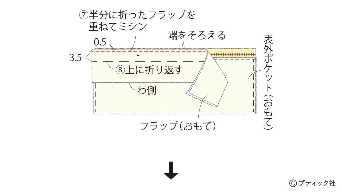 ギャザーを寄せたフリルでフラットポーチをガーリーに仕上げました。ハガキより一回り大きいサイズなので、マチなしでも細々したものをいろいろ入れられて便利です。